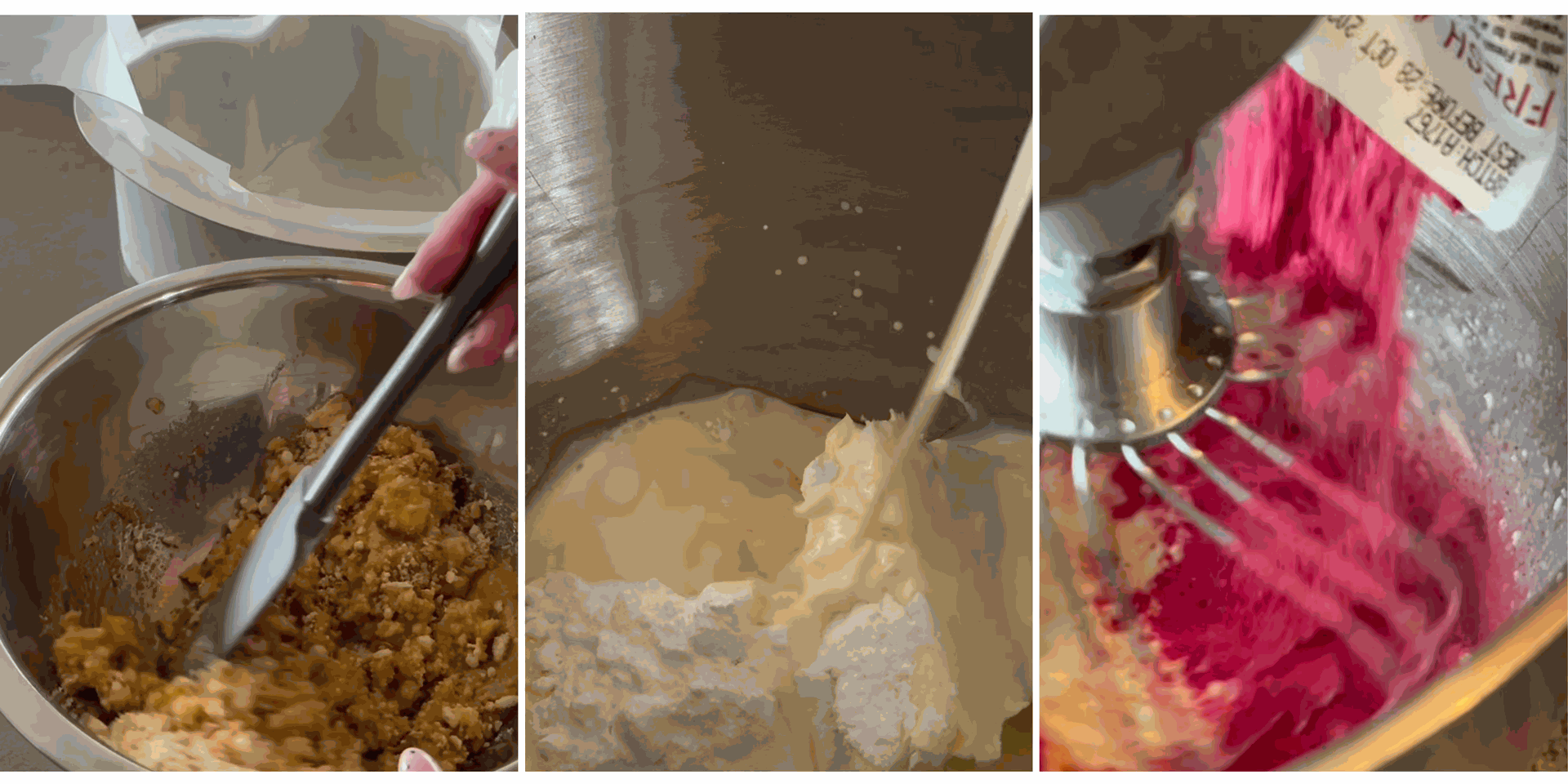 - Beat the cream cheese until smooth. Add icing sugar, vanilla and the freeze-dried raspberry powder. Mix until well combined and silky.